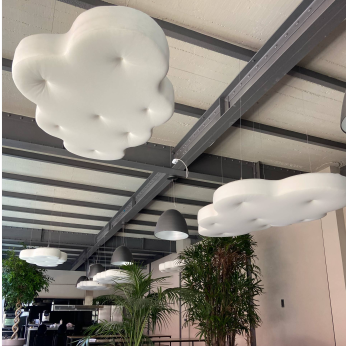 Acloud® est une société qui fabrique et distribue un dispositif d'absorption acoustique suspendu, dont les formes étudiées évoquent celles d’un nuage.