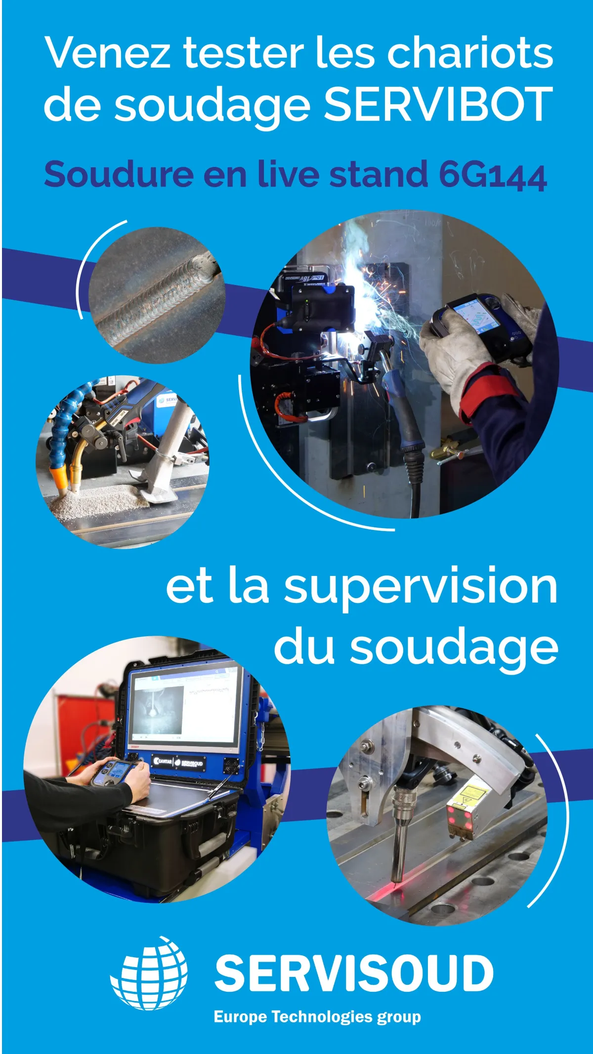Depuis 1987, SERVISOUD est spécialiste dans la conception et la réalisation de chariots de soudage, de machines spéciales et accompagne ses clients pour l’ensemble des fournitures industrielles dédiées au soudage, coupage et à la protection individuelle du soudeur. SERVISOUD accompagne ses clients dans la mécanisation du soudage grâce à sa gamme de chariots mobiles SERVIBOT. Les chariots de soudage sont connectés, autonomes, programmables toutes positions. Ils sont complètement modulables puisqu’ils peuvent évoluer avec une double motorisation, une commande de pilotage à distance, des kits de soudage ou de coupage…