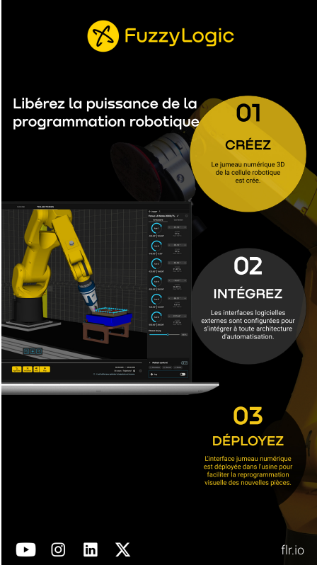 Fuzzy Logic offers its customers a revolution in industrial automation, providing them with flexible robotics that are easy to reprogram. Thanks to our solutions, companies can quickly and easily adapt their robots to changing production needs, increasing agility, reducing costs and optimizing efficiency. Fuzzy Logic makes the future of customized production accessible to all.
