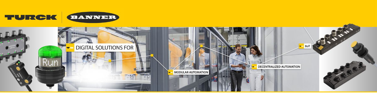 TURCK BANNER is the French joint venture of TURCK and BANNER. TURCK designs and manufactures industrial automation products. The range extends from sensors to the cloud, with a strategy of hardware and software decentralization. TURCK offers a wide range of sensors including pressure, temperature, level, flow, proximity, linear displacement, distance, inclination, rotation, vibration and humidity. These sensors generate high value-added data for Industry 4.0, thanks in particular to IO-Link, which are collected and pre-processed thanks to intelligent remote I/O solutions in IP20 or IP67. TURCK also offers the top layer with HMIs and field PLCs, and an intuitive, secure industrial cloud solution. Other solutions such as RFID, machine safety or ATEX signal interfacing are also a specialty of this company founded in 1965 in Müllheim, Germany. TURCK is renowned for its reliability and interoperability in a wide range of sectors, including intralogistics, pharmaceuticals, automotive, food processing and many more. Banner Engineering designs and manufactures industrial automation products, including sensors, intelligent IIoT and industrial wireless technologies, LED lighting and indicators, measuring devices, machine safety equipment, as well as barcode scanners and machine vision. These solutions contribute to the manufacture of many of the things we use every day, from food and medicines to cars and electronics. Every two seconds, a reliable, high-quality Banner product is installed somewhere in the world. Headquartered in Minneapolis since 1966, Banner is an industry leader with more than 10,000 products, factories on five continents and a global team of over 5,500 employees and partners. Its dedication to innovation and personalized service make Banner a trusted source of intelligent automation technologies for customers worldwide. TURCK BANNER France has a team of 25 people and we support our customers in the transition to Industry 4.0 with a complete and open solution approach.